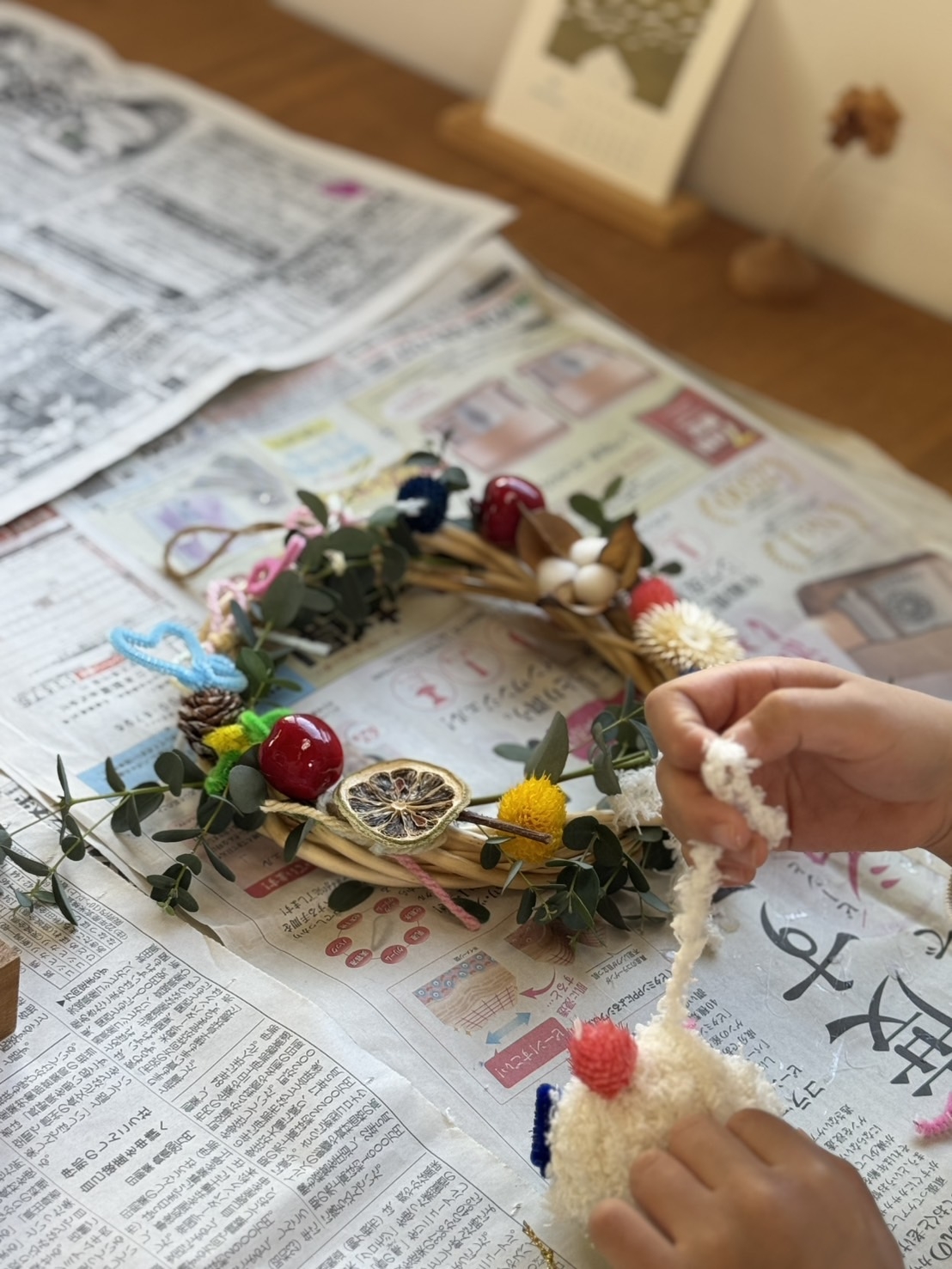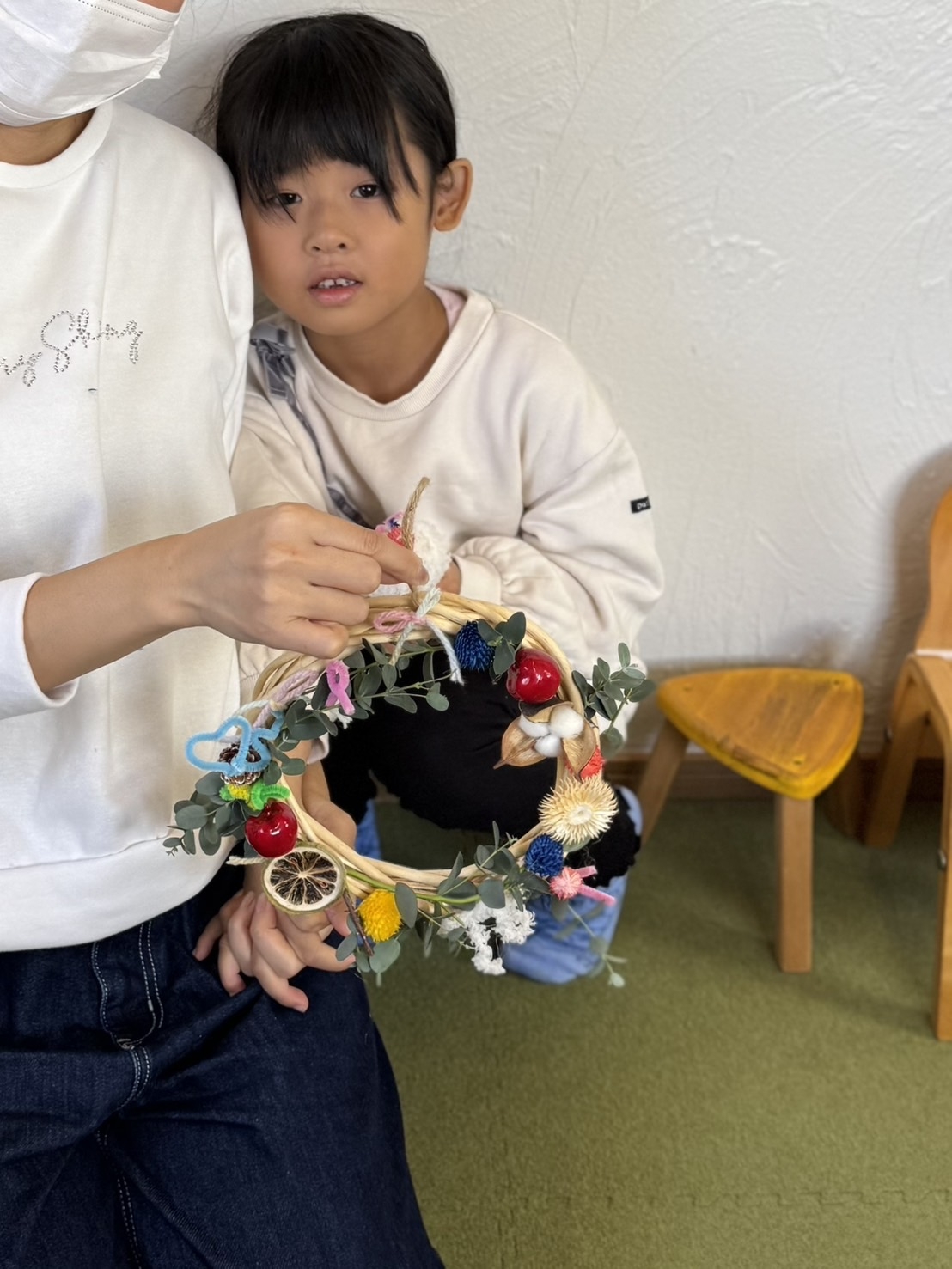 とってもかわいいリースが出来上がりましたね♩