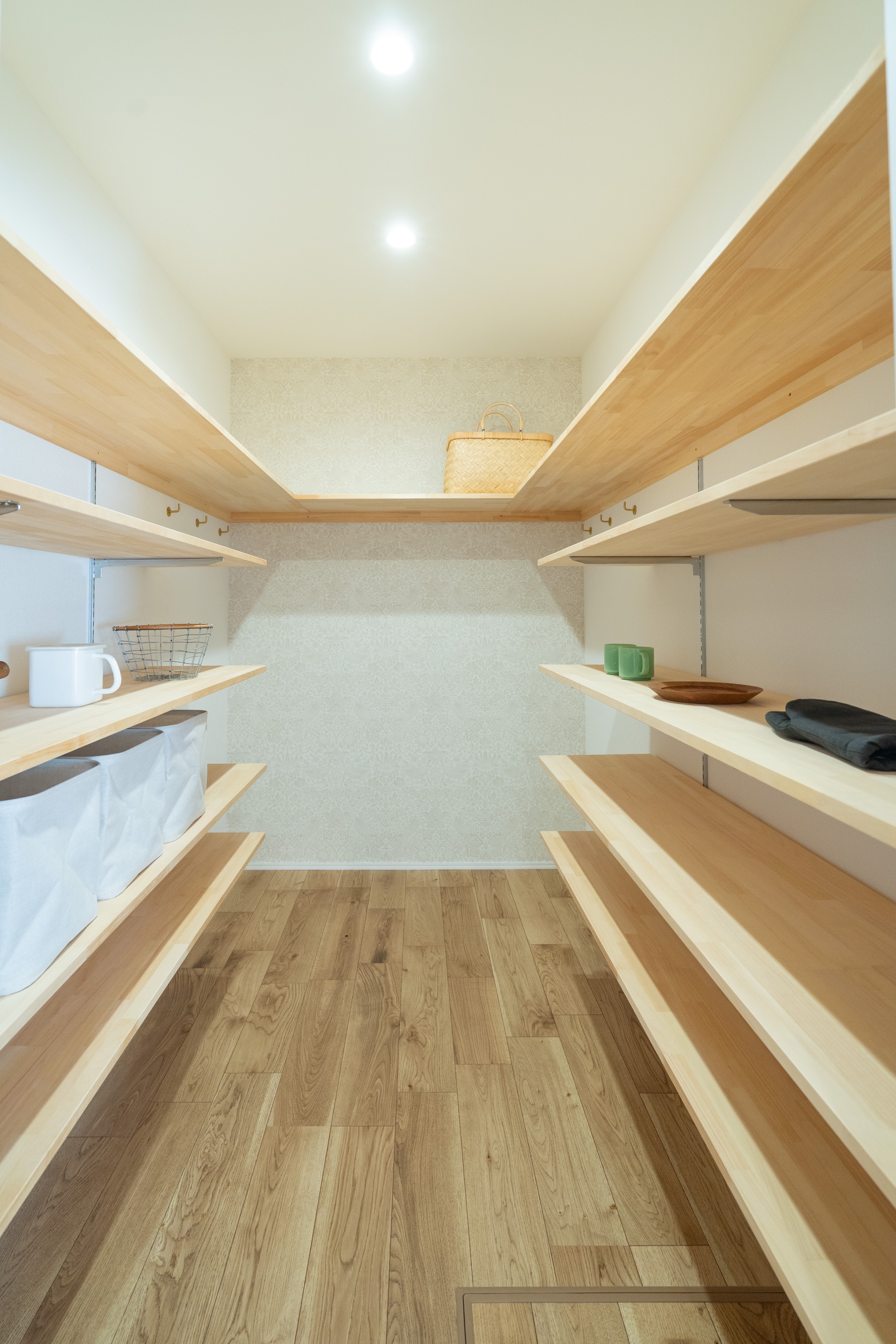 キッチン脇の集合収納は、3畳の広さに可動棚をたっぷり。