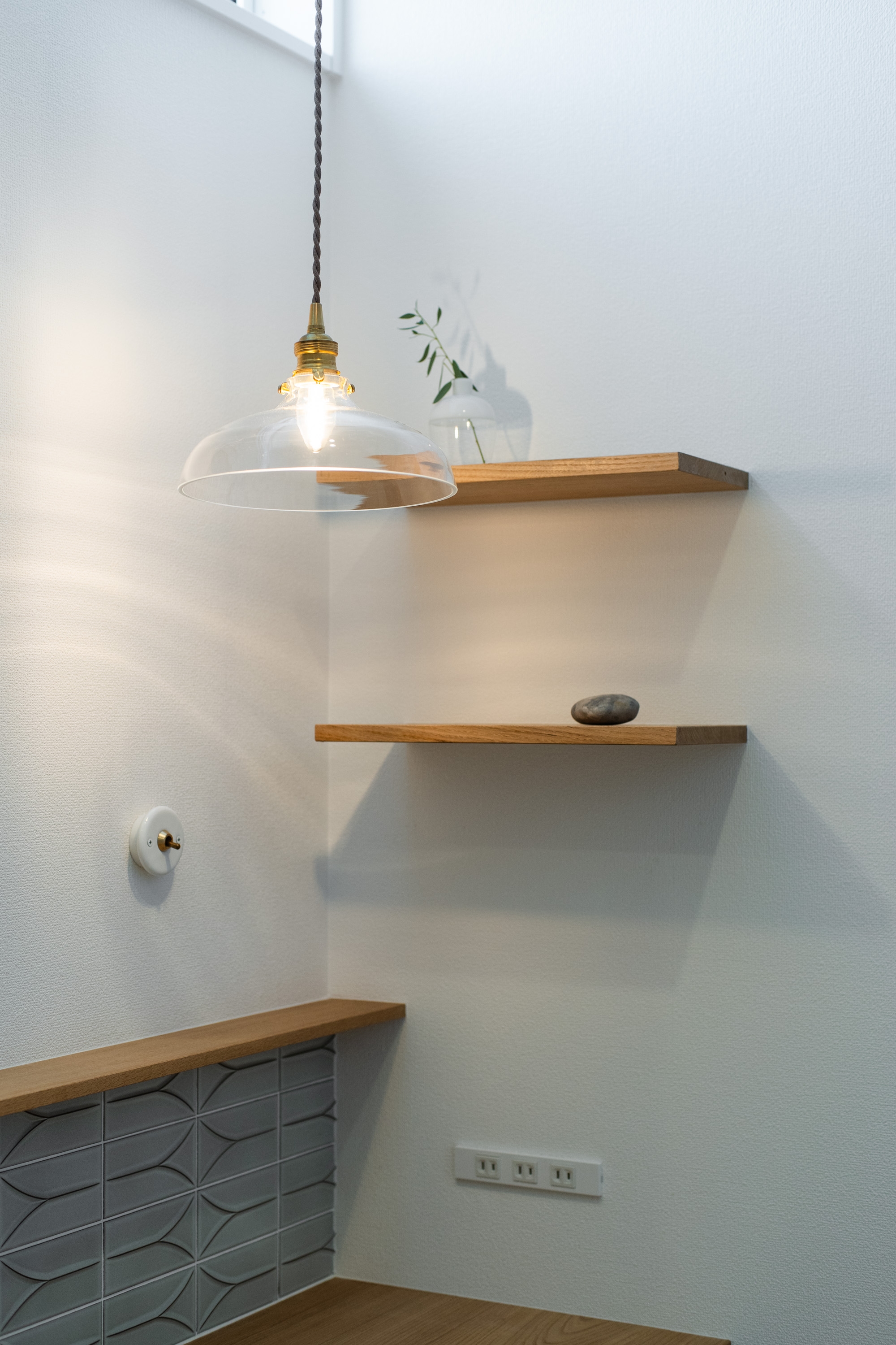 おしゃれなタイルとガラスのペンダント照明で、上質でやさしい雰囲気に仕上げました。